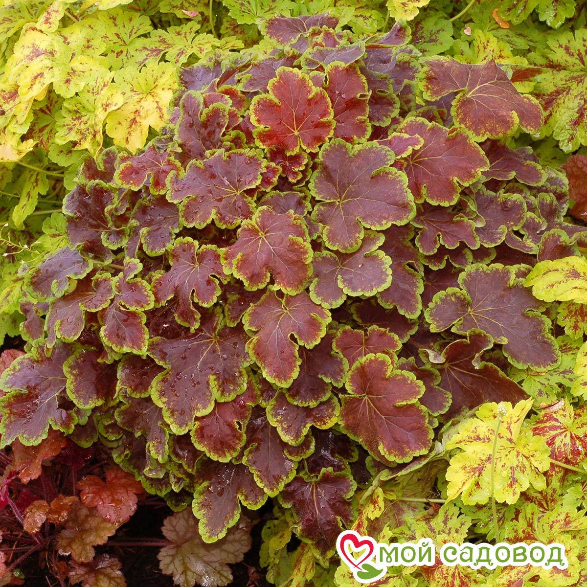 Читать далееКуст растения плотный, с шарообразной кроной, небольшого размера, компактный, около 30 см высотой и 40 см шириной. Растение хорошо и быстро разрастается. Листва яркая и эффектная, крупного размера, округлой формы, со слабой рассеченностью, глянцевая, с волнистыми краями. Листовые пластинки плотные, темно-красно-коричневые, имеют лимонно-зеленую кайму. Гейхерелла сохраняет цвет листвы на протяжении всего сезона. Черешки длинные, густо опушенные.